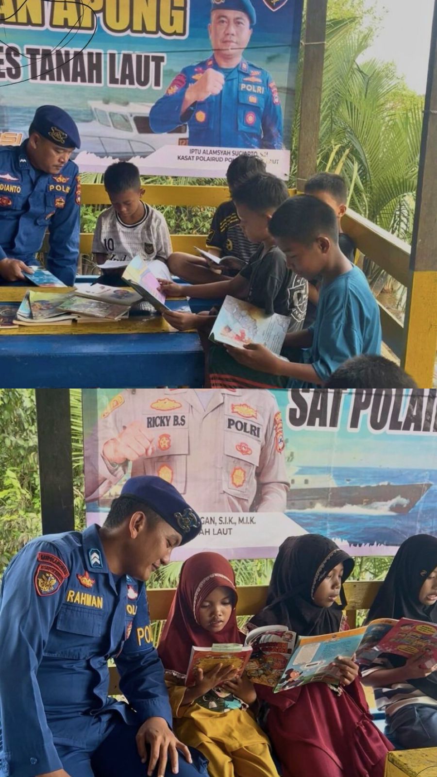 Dalam upaya menjangkau komunitas pesisir, pulau-pulau kecil, serta daerah terpencil yang sulit diakses, Satuan Polisi Air dan Udara (Satpolairud) Polres Tanah Laut menghadirkan Perpustakaan Apung yang beroperasi di atas Kapal Polisi XIII-2002-38. Kegiatan tersebut dilaksanakan di Desa Sungai Rasau, Kecamatan Bumi Makmur, Kabupaten Tanah Laut, pada Selasa (13/1).
